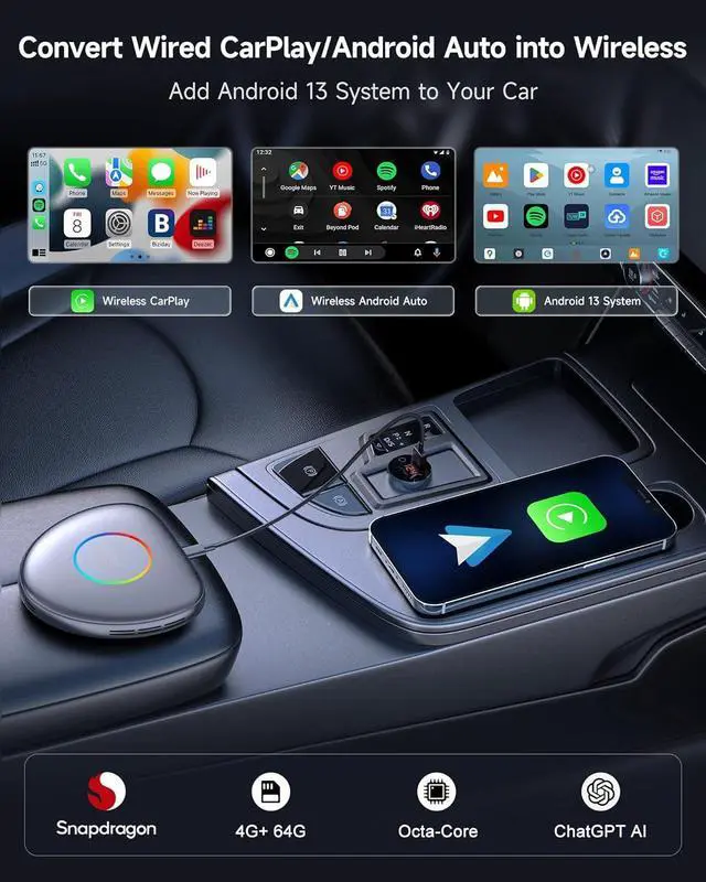 High-Performance Specs: Android 13 system with Qualcomm QCM6115, 4GB RAM, and 64GB storage for smooth app launches, quick multitasking, and ample space. Enjoy enhanced in-car entertainment as streaming, navigation, and beyond