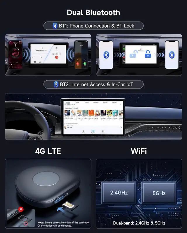 Stay Connected Anywhere: Browse, stream, and navigate via built-in 4G LTE, Wi-Fi, or Bluetooth tethering. Enjoy high-speed internet on the road without relying on phone cables.