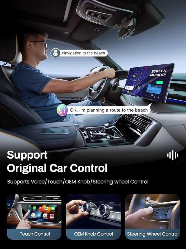 Humanized DesignAfter setting up the connection for the first time, CarPlay/Android Auto wireless connection will be activated automatically every time you start your car, no need to operate manually. At the same time, the product skillfully retains the original operation of the car, whether it is sensitive control of the touch screen, convenient operation of the buttons, or OEM and other original functions, are completely retained, and on the basis of your familiar habits of use, innovatively incorporate more practical functions, adding convenience and fun to your driving journey