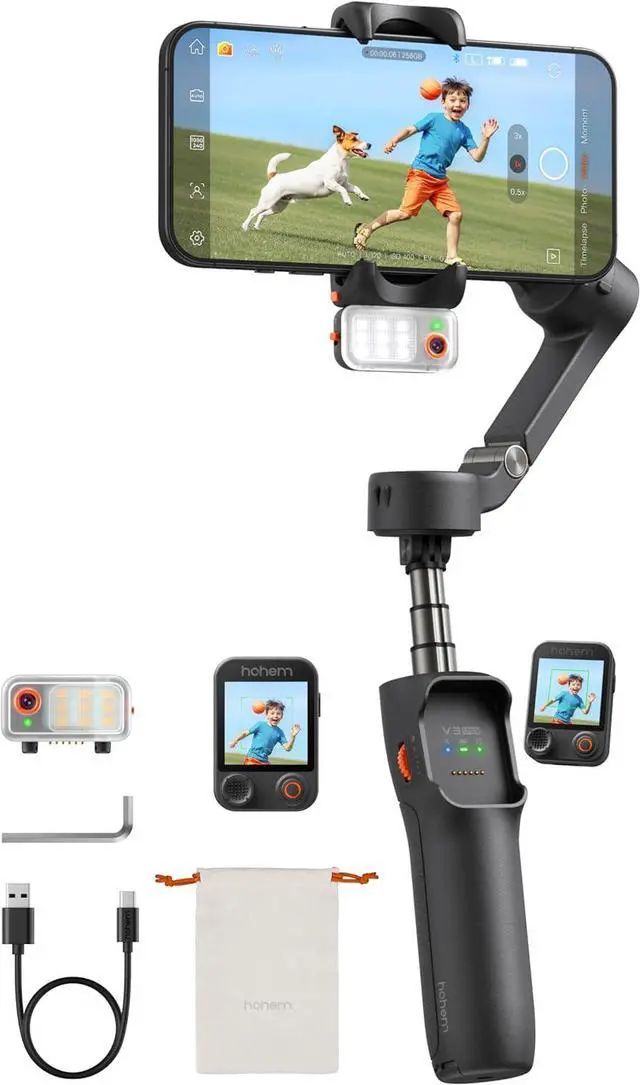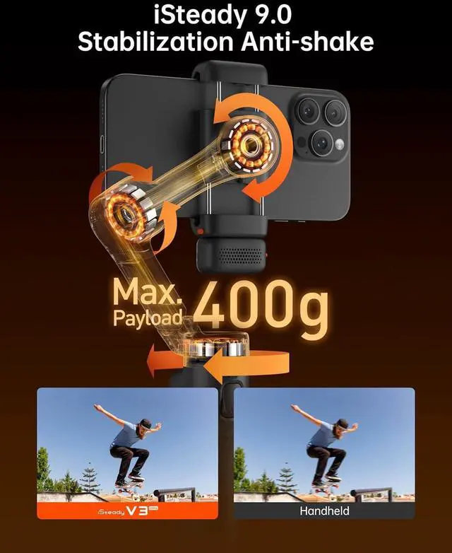 Tracking Everything You Can See: The new AI tracker of iSteady V3 Ultra smartphone gimbal can accurately track not only people but also pets, buildings, and everything else in your shot. Turn on the 3-color fill light on the AI module to film clearly even in low light.