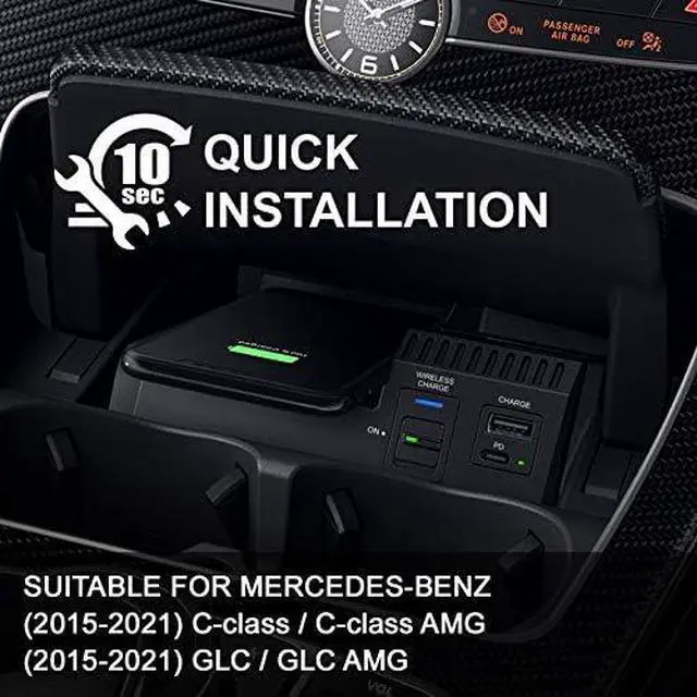 installation: The accessories of has applied and owned an exclusive patented appearance, the accessories level perfectly fits Mercedes Benz models of. Compared with other wireless car charger mounts, our products are more stable. You only need to plug this wireless car charger into the cigarette lighter port, you can quickly complete the installation, no more cluttered wires and USB cables in the car to block your views and distract you from driving.