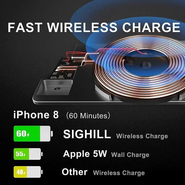 Multiple Protections: car wireless charger is equipped with the independently developed TWIN AIRWAY COOLING system, a silent vortex fan generates airflow, and simultaneously providing 2 air channels to cool the internal wireless charging transmitter components and phone wireless charging receiving coil, reducing the temperature of QI Wireless car charger and phones, offering effective charging environment for phones with cases.