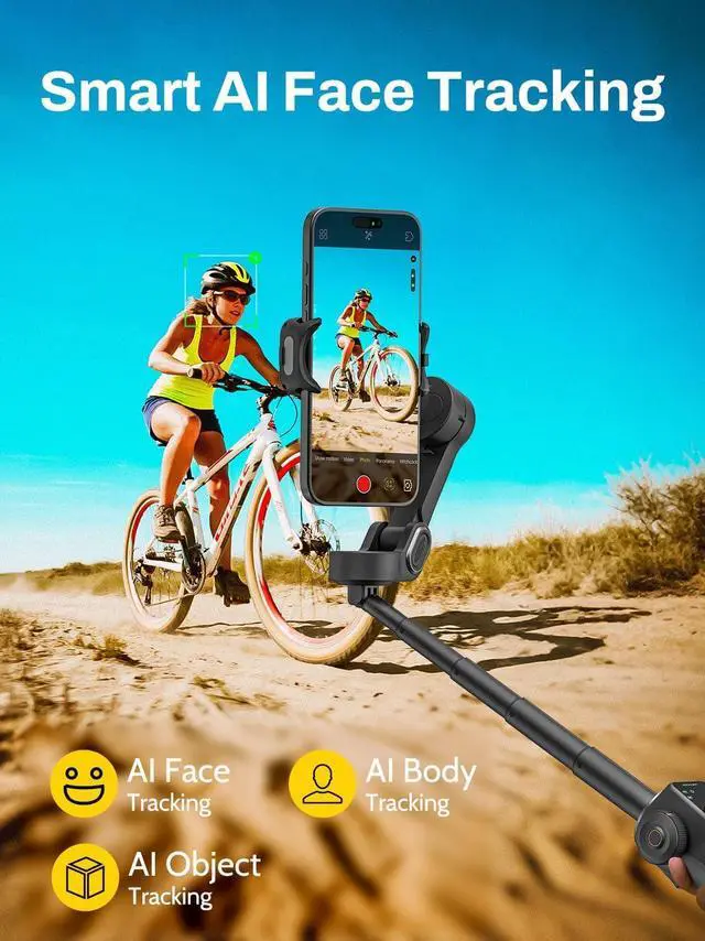 Perfect Framing: With intelligent AI face tracking, the Smart V8 gimbal for iPhone keeps you or your subject centered in the frame. Essential for vlogging, interviews, YouTube creators, and solo shooting, ensuring reliable framing without assistance.