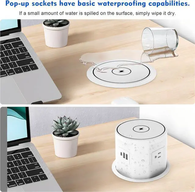 Safe to use: the pop-up outlet for countertop are equipped with an anti-insertion device, which can effectively prevent electric shock caused by accidental contact. It also has a splash-proof surface, making it safe to use in the kitchen and on the island.