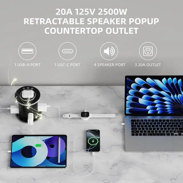 Mobile APP controlThis automatic pop up power strip can realize the mobile APP link. On the mobile phone, you can control it to power on and off, go up and go down, and control the LED lights on and off. You can control the home appliances at any time when you are away. Realize a real high-intelligence home appliance system