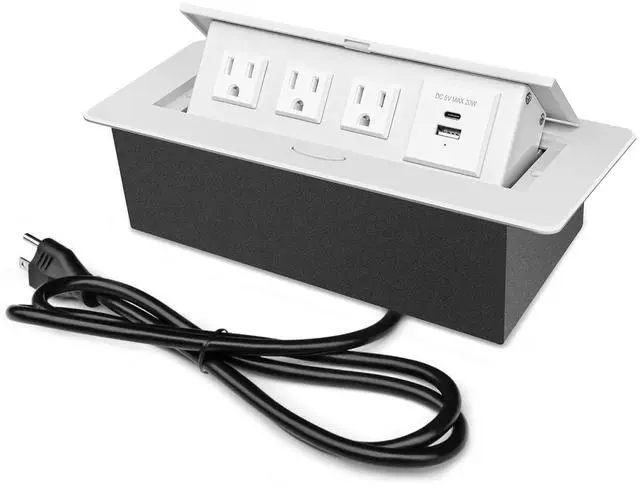 Multifunctional Table Power HubConference table connectivity box with 3 outlet, USB A and USB C chargers, meets multiple charging requirements at once, powers your phones, computers and other devices efficiently.
