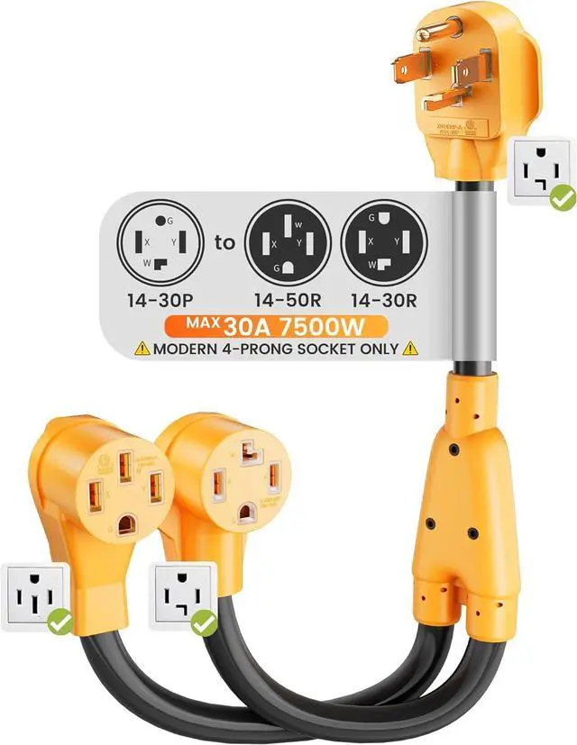 Flexible Power Solution: Integrates power either a NEMA 14-30R (for 4 prong new dryers) or NEMA 14-50R (for RVs, EVs) from a single, modern 240-volt outlet; It offers a convenient and cost-effective switching solution