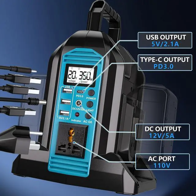 Battery Compatible: This Power inverter is powered by Makita ALL 18V Li-ion batteries. (Batteries not Included)