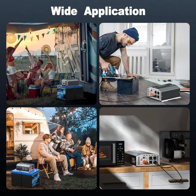 Batteries: The 1500W power inverter is equipped with 4 AC U. S. outlets, USB, and Type-C fast charging ports. Simply connect the 12V battery to the inverter with the power cable to access stable 110V/120V power. Its ideal for off-grid solar, trucks, homes, RVs, boats, travel, camping, and outdoor AC use.