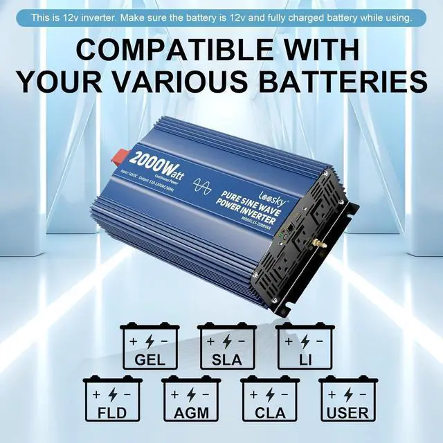 Ultimate VersatilityCompatible with lithium and standard 12 V batteries; perfect for off-grid solar, RVs, trucks, camping, emergency backup, tailgating, and morepower appliances like microwaves, TVs, freezers, induction cooktops without noise or interference.
