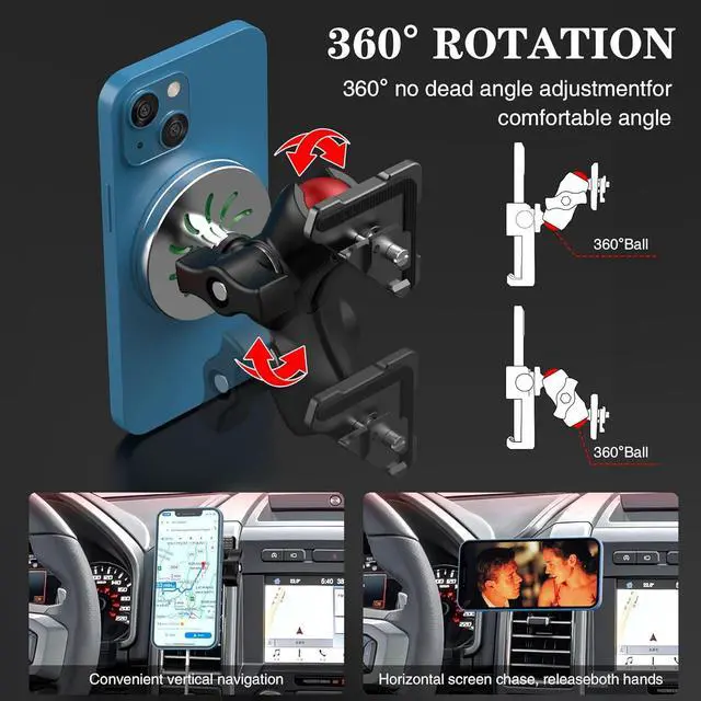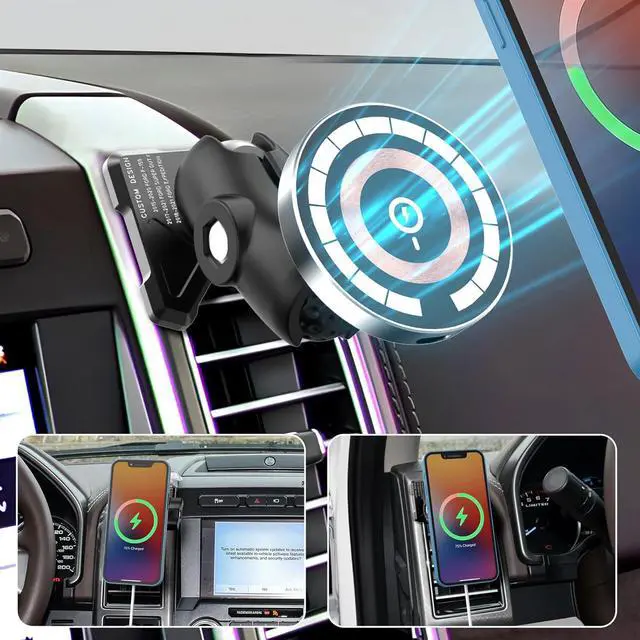 Design For iPhone16/ 15/ 14/ 13/ 12 Series: Ford f150 magnetic wireless car charger phone holder fits iPhone 16 series/15/15 Pro/15 Plus/15 Pro Max/ iPhone 14/14 Pro/14 Plus/14 Pro Max/13/ 13 Pro/ 13 Pro Max/ 13 Mini/ iPhone 12/ 12 Pro/ 12 Pro Max/ 12 Mini. This magnetic phone holder for car also works for Original Official MagSafe case and other brands' built-in MagSafe cases, no need to use the additional magnet plates