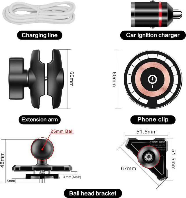Wireless Car Fast Charger: Max 15W Fast Wireless Car Charger Mount Featuring an upgraded smart control chip, it effortlessly recognizes your phone model, it will auto-lock aligned with the charging coil for seamless charging, enjoy fast charging capabilities. With the standard outputs including 7.5W, 10W, and 15W, the f150 phone mount magnetic wireless car charger enjoy fast charging capabilities with up to 15W for LG V50 / V35 / V30, 10W for Samsung Galaxy S22 Ultra/ S21+/ S20/Note 10+, 7.5W for iPhone 15/14/13/12 Pro Max/XS Max/XS, and 5W for other Qi-enable compatible phones. The package includes a QC 3.0 car charger adapter, along with a USB-C cable