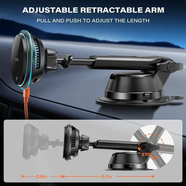 Built-in Cooling for Smarter Charging: Stay powered without overheating. Featuring a semiconductor cooling chip and an active fan, this for magsafe wireless car charger mount keeps your device up to 41°F cooler than standard wireless chargersideal for long drives and GPS navigation