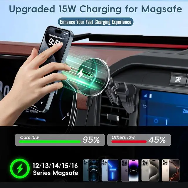 15W Wired Fast Car ChargerWith upgraded reinforced copper coils, wireless car mount charges 40% faster than standard wireless charger mount. And built-in smart chip, it can intelligently recognize wireless fast charging devices and prevent overheating and short circuit, ensure the safety of your phone