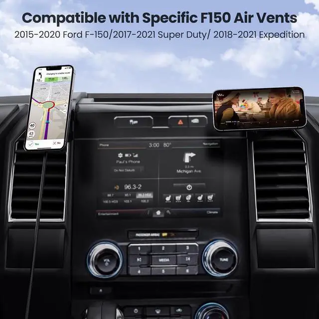 Exclusive CustomizationThe magnetic car phone mount is only designed for 2015-2020 Ford F-150, 2017-2021 Super Duty, and 2018-2021 Expedition and compatible with all mobile phones, this magnetic air vent phone holder is only designed for OEM dashboard, not compatible with third party modifications