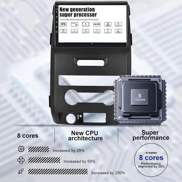 8-Core 4+32G Car Radio for Ford F150 2009-2014 Equipped with 4GB RAM and 32GB ROM, 8-core CPU ensures high performance and low power consumption, ensuring smooth operation of the car audio. After connecting to WiFi, it supports downloading various APPs including Waze, Spotify, YouTube, Tik Tok and more. This car stereo is suitable for Ford F150 2009 2010 2011 2012 2013 2014. Easy to install and without purchasing other accessories