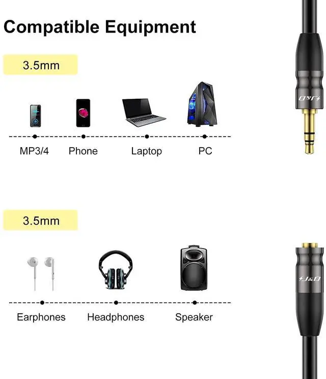 Easily connect your smartphone, laptop or PC with a 3.5mm jack output to a device with 3.5mm jack inputs such as speakers, mixing desk and so on