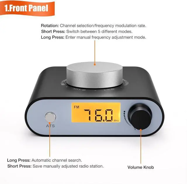 Friendly Reminder-- This S5000 FM radio receiver will automatically powers on when connected to electricity and retains all your settings (station/mode/volume) when powered off. For best FM reception quality, we strongly recommend using only 16V-20V linear power supplies (included). Other power adapters may cause interference with radio signals