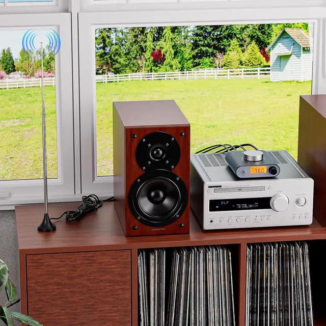 Professional FM Radio Receiver-- S5000 FM radio receiver adopts professional Si4730 radio chip for better reception, higher signal sensitivity and better resistance to electrical interference. Also comes with 33ft long cable and retractable antenna up to 3.3 ft, you can position the antenna windowsill or rooftop (magnetic base helps you fix the antenna position), you can enjoy clear stereo signal reception and explore various radio stations and enjoy your favourite programmes on different channels anytime, anywhere