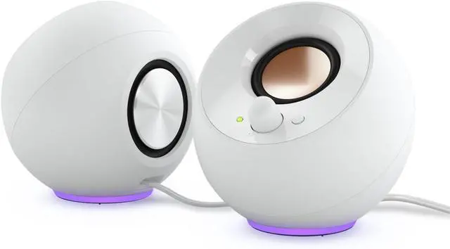 Pebble SE Minimalist 2.0 USB-C Powered PC Speakers with RGB Lighting, 3.5 mm AUX-in, Up to 4.4W RMS Power for Computers and Laptops (White)