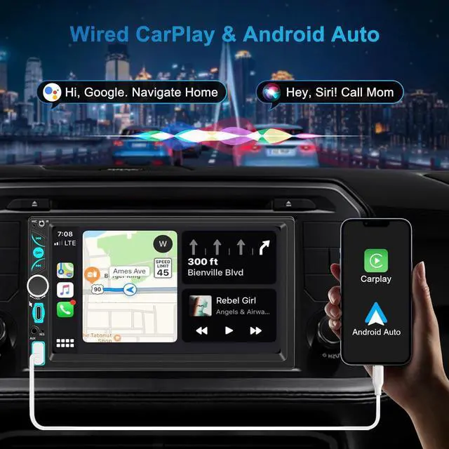 High-Quality Car Stereo PlayerThis double din car stereo measures 7.01" (L) * 4.0" (W) 2.36" (H). Before ordering, please confirm it matches your car radio. It is equipped with a 7 inch 1024×600 full HD carplay screen, bringing clear visual effects and smooth operation experience.