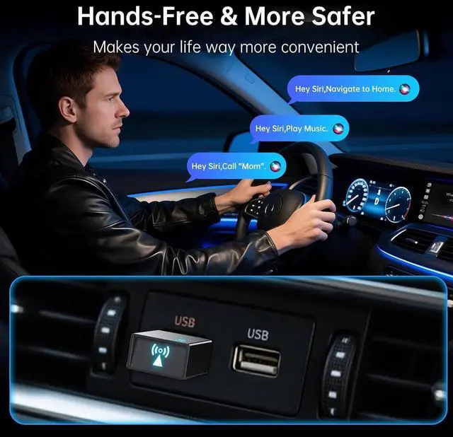 2025 Upgraded Wireless CarPlay Adapter for iPhone: Equipped with 5.8GH z WiFi and Bluetooth 5.3, for AP carplay wireless adapter utilizes Bluetooth and WiFi wireless transmission adaptive frequency hopping technology ensures more stable, faster and lower interference, delivering clear music streaming, calls, and highly responsive navigation. This ensures a noticeably faster, more reliable, and enjoyable Car Play experience throughout your drive
