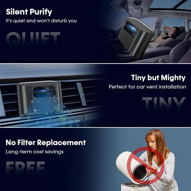 And Office: Ideal for all environments. Whether driving, working, or relaxing at home, this portable air purifier ensures you breathe clean, fresh air in every space.