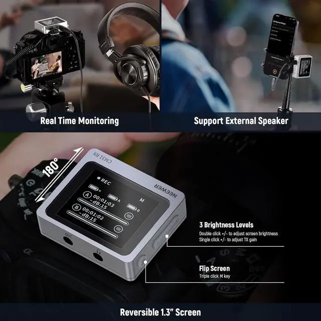 1000ft/300m Stable Transmission With a high gain LDS antenna, it minimizes body interference for reliable audio transmission. In open and unobstructed areas, it supports up to 1000ft/300m wireless transmission for smooth recording and enhanced anti interference performance.