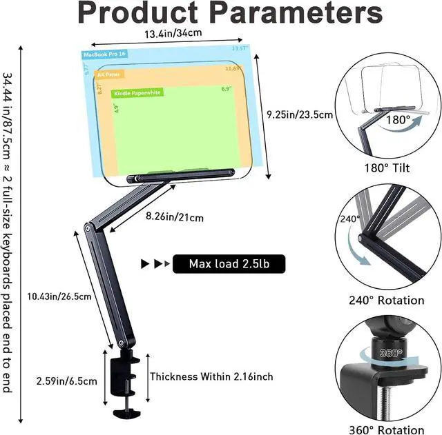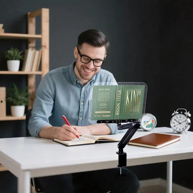 Portable & Lightweight: With dimensions of 13.4 x 9.25 x 1.77 inches and a weight of just 2.23 lbs, this portable book stand with clamp is both portable and easy to store in a drawer or on a shelf.