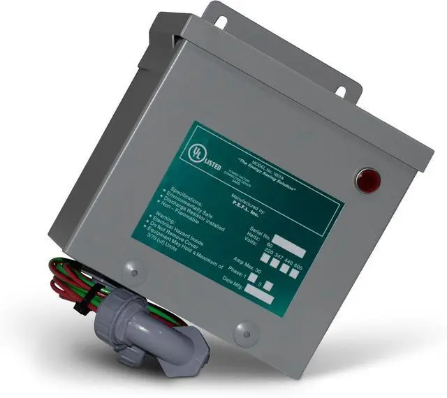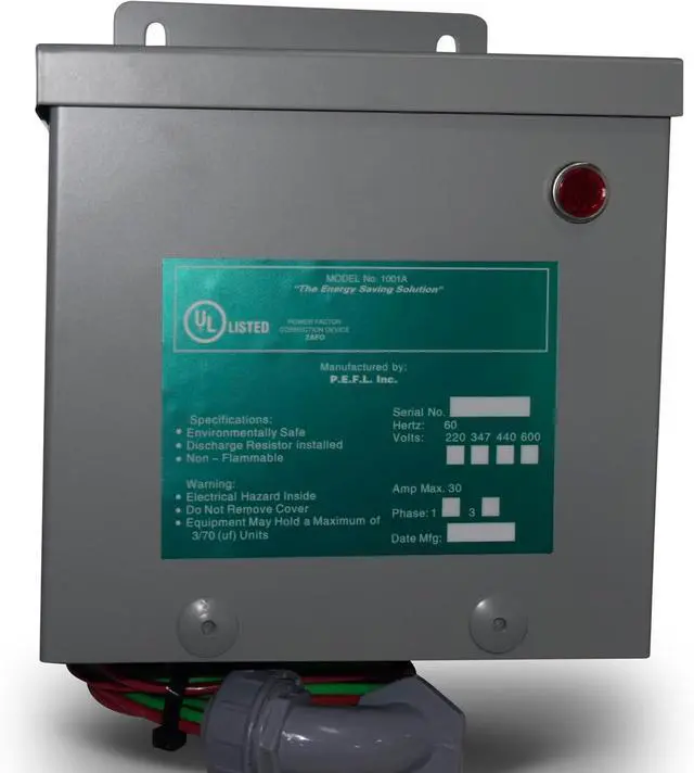 Protect your home's electrical system with the P. E. F. L. KVAR Surge Protector for 200 AMP Service. Designed to offer maximum protection against power surges while optimizing energy usage, this surge protector is perfect for modern homes with high electrical demand. The PFC Unit fine-tunes the electrical system in your home or office. This fine-tuning reduces heat generation, reduces amperage, and results in reduced electricity consumption. It causes less electrical energy waste while increasing the life of the inductive equipment in your home or office. It protects against power surges and increases the electrical panel's capacity by making it run cooler. All this means extra $$$ in your pocket. All PEFL Inc. products are backed by a 15-year comprehensive warranty. The technology applied by the PFC Unit reclaims, stores, and supplies power to inductive motors and loads. This process provides the reactive power (KVAR) required to establish the electromagnetic field (EMF) around the inductive windings of a motor while reclaiming and recycling the power du the normal working phase. The power reclaimed and recycled by the PFC Unit would generally be pushed back through the power distribution lines.