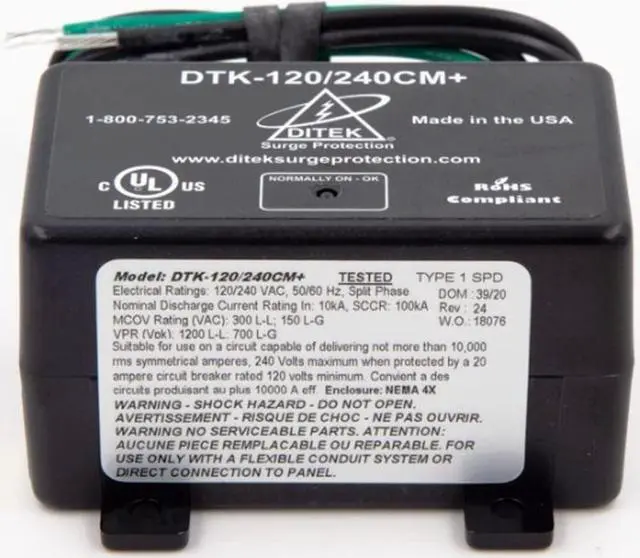 DTK-120/240CM+ Surge ARRESTOR, Parallel Protector, Multi-Purpose, NEMA 4X, UL1449 Listed, SPD, Type 1, 2W(+G), 120/240VAC