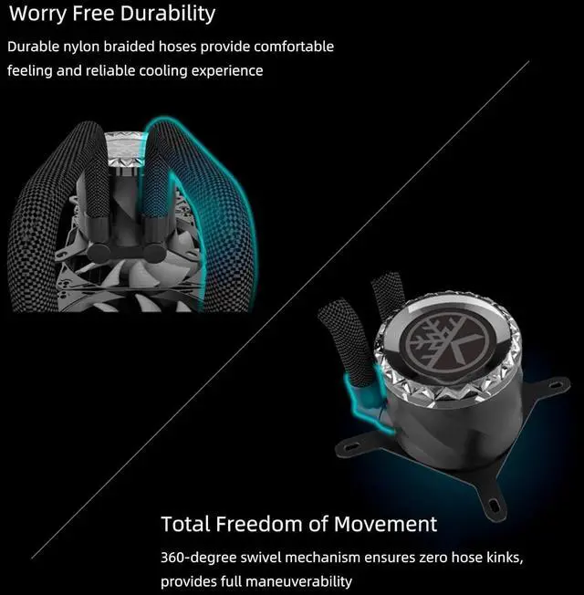 Hassle-Free Installation: This CPU cooler is easy to install, the 360-degree swivel mechanism ensures zero tube kinks, and provides full maneuverability. Thermal paste is included