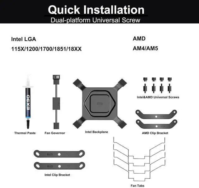 Dual Platform CompatibilityRZ620 CPU air cooler overall height of the product is 157.5MM, which is compatible for LGA 115X/1200/1700, AM4/AM5. Its installation is very convenient, the package provide dual-platform installation tools, please confirm before installation