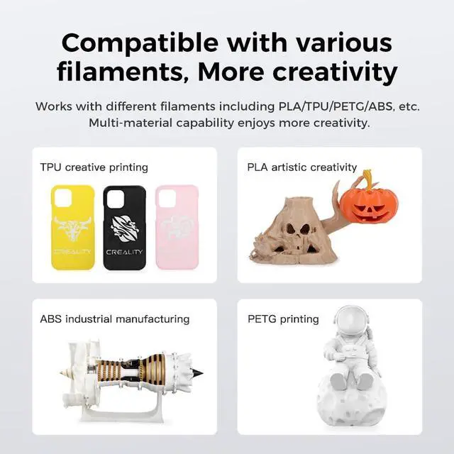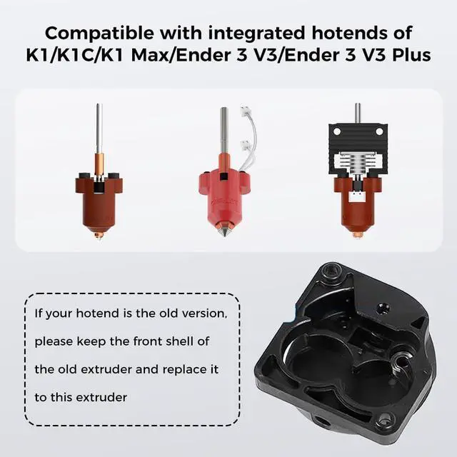 Wide Compatibility K1/K1 Max/K1C/K1 SE/Ender 3 V3 Plus Extruder works well with different filaments like PLA/TPU/PETG/ABS etc. Multi-material capability enjoys more creativity