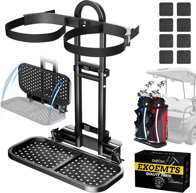 [Dur]: The main body of the golf c rear bag holder is made of heavy-duty metal with black antioxidant and rust-resistant coating, which is resistant to abrasion and corrosion. High-quality nylon straps can self-adjust the elasticity of the straps to provide a firmer hold