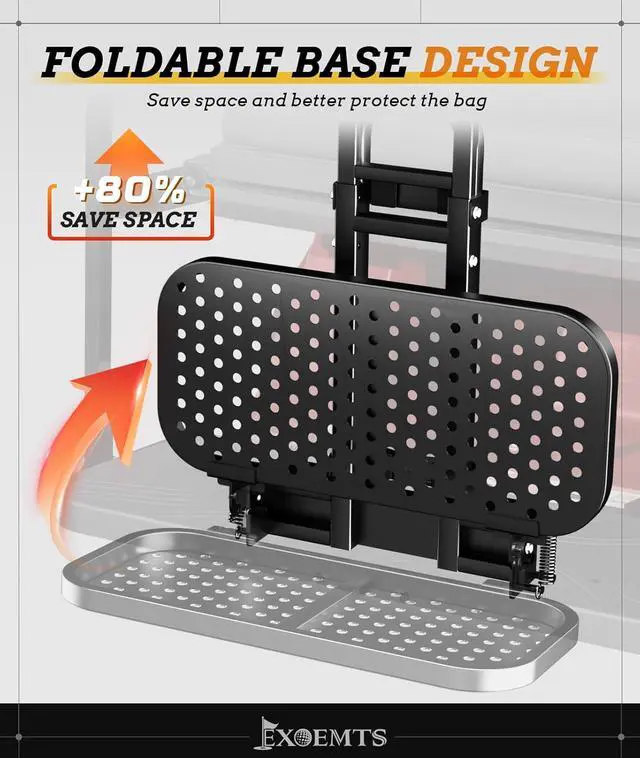 [Fold]: Single shoulder strap golf c backseat bag holder attachment and fold base ensures the stability of the golf bag while also making it easier and faster to pick up and place, can be folded for use when parking in the garage or parking multiple vehicles at the same time