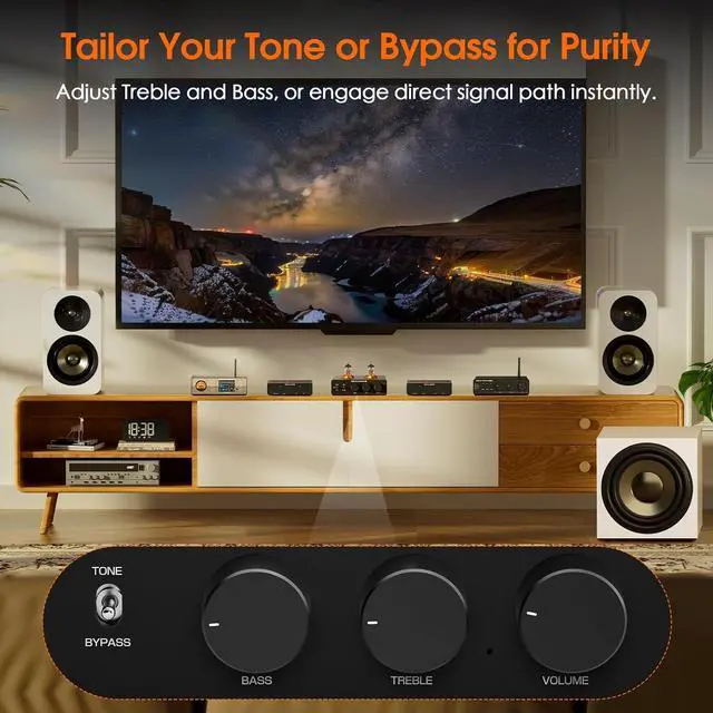 Precise Tone Control with Bypass: Fine-tune the bass and treble for a customized sound profile, or engage the bypass mode for pure, unaltered audio. Whether youre adjusting the tone or listening to the original signal, the P7 gives you full control over your listening experience.