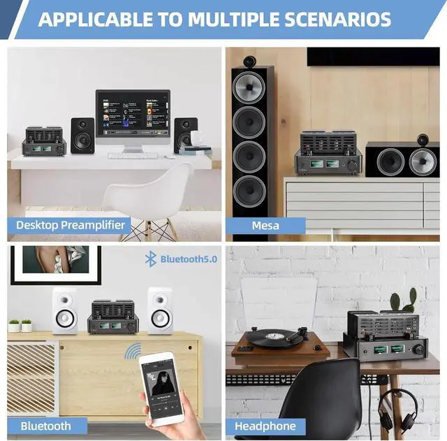 High-quality craftsmanship: Home stereo system components the use of high-end analog sound and high-quality circuit components, brushed all-alnum alloy body, hollow alnum alloy vacuum tube protective cover, full-metal transformer cover, built-in 2PCS toroidal transformer, high-quality materials have a protective and heat dissipation effect, beautiful and dur, very easy to use, suit for stereo amplifier receive and phono preamp for turnt