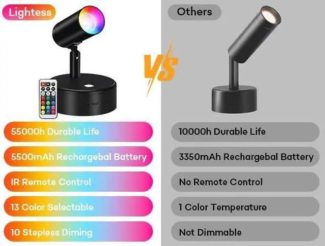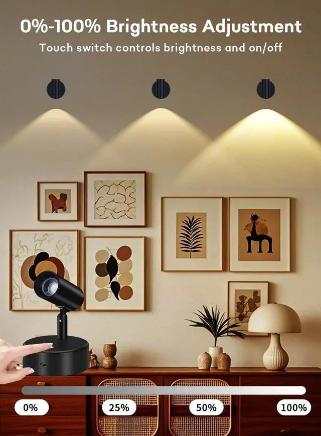 Flexible 360° Rotating Joystick Design The recharge uplighting indoor for living room's unique swivel lr allows it to rotate 180° up and down and 360° left and right, allowing for precise and flexible light direction adjustments, providing you with a personalized lighting experience that illnates ry corner of your home. This led spotlight indoor is perfect for closets, TV walls, bedes, hallways, cabinets, closets, staircases, bedrooms, staircases and hallways.