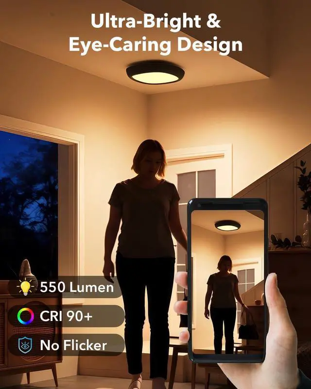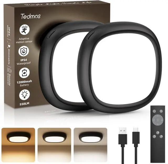 &: Powered by large-sized, energy-saving LED beads, this wireless ceiling light delivers 550LM of bright, flicker-free illnation through an optical lampshade, ensu eye-friendly lighting. Additionally, our no wi ceiling light features 3 colors (warm white, natural white, and cool white) to suit various settings and moods.