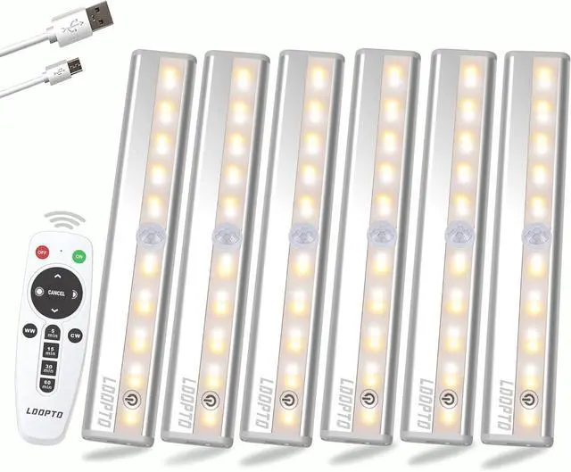Package include: 6 led closet lights, 1 user manual, 1 remote controller (by 2pcs AAA 1.5V batteries, Not Included), USB c, 6 Stick-on magnetic strips.