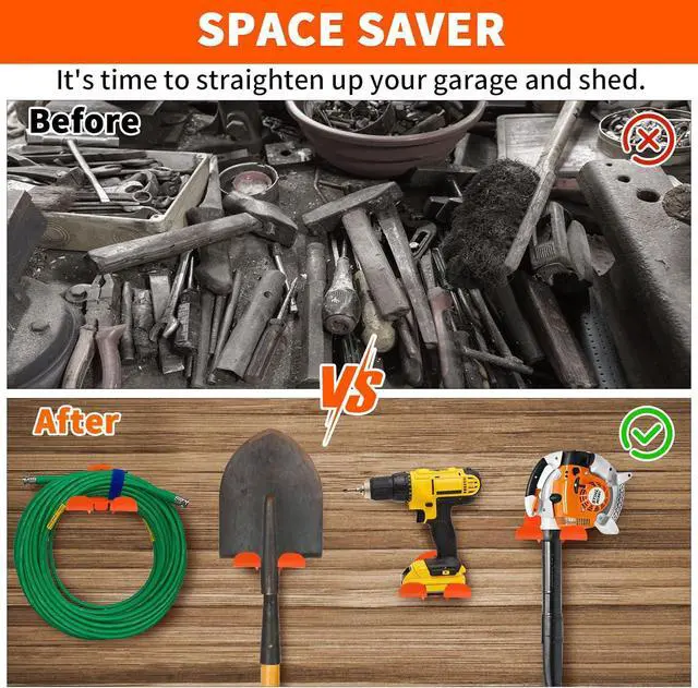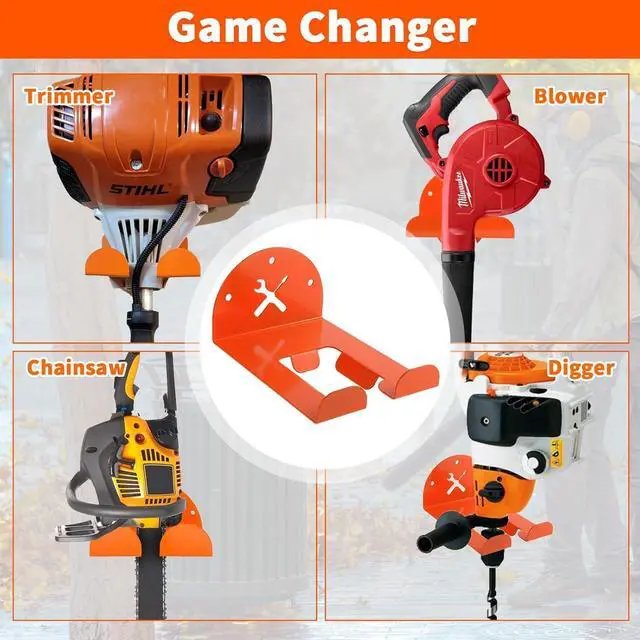 [Heavy Duty] Proudly engineered by the design team in Troy, VA, our weed eater hanger brackets are constructed of 5/64" thickened 12 gauge stainless steel, which can handle up to 200 lbs and give you total confidence that your equipment is firmly stored. Each wall mounted grass trimmer rack is powder coated in dur orange paint, which perfectly matches the color scheme of Stiehl tools. The silicone pads protect your items from scratching or damage when rubbing up against the hook
