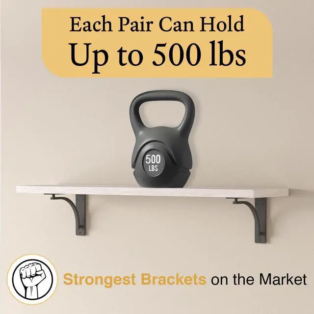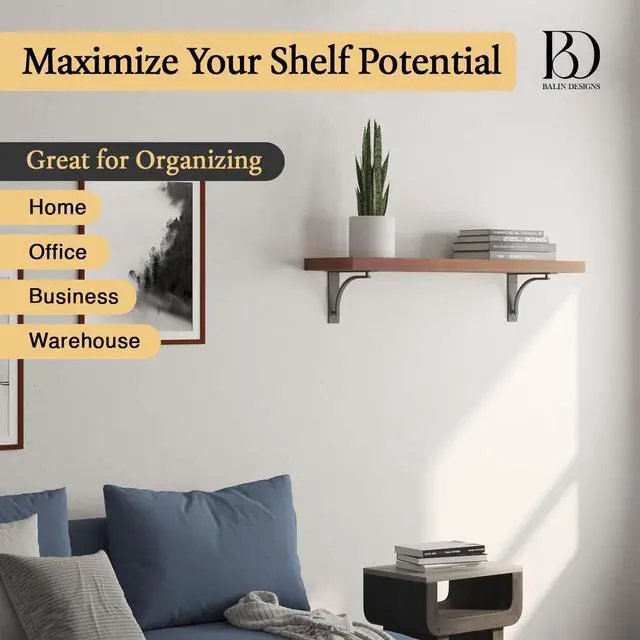 Versatile Design Experience the adaptability of our wall brackets suit for 10 inch to 12 inch shelf depths. They are an ideal heavy-duty shelving solution for your kitchen shelf brackets, garage shelf brackets, office, living room, bathroom, bedroom, closet, laundry room, commercial retail space or business. Rooted in classic design, our shelf brackets elevate your home with a modern accent that nr goes out of style.