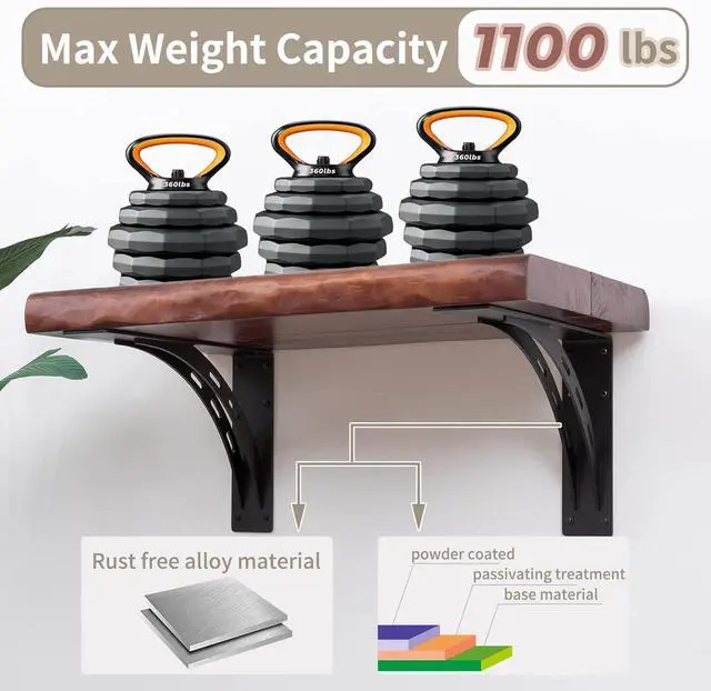 powder coating finished & Applic place Matte black coated finish, dur and sturdiness. bracket comes with traditional matte black, It fits in perfectly in your farmhouse kitchen, garage, basement storage room, and backyard.
