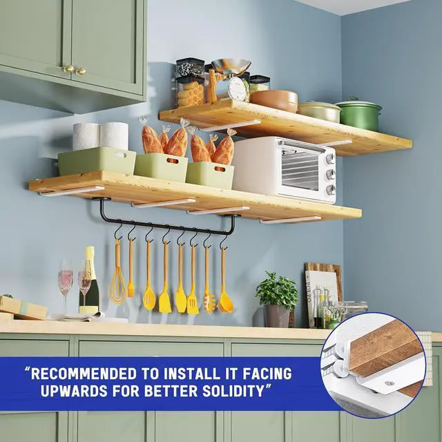 Complete Accessories & Easy to InstallBoards is no included. Provide all the screws needed for different wall mountings, and extra spare screws are prepared for unexpected situation. They can achi strong grip on wall surface. And a spirit ll is also included to measure as well as keep the shelf hardware balanced du installation. Detailed installation instructions are provided. Just follow the steps, this wall mount shelf bracket can be installed n by someone without experience.
