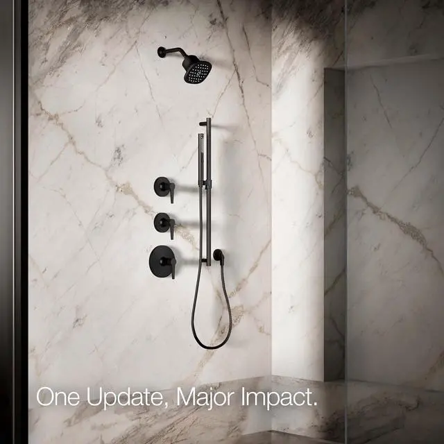 When it comes to your water, we beli less is more. The Cinq square single-function filtered showerhead features our five-layer Aquifer KDF 55 filtration system so you can soak in only the good, effortlessly. Water flows through multiple layers including activated carbon to reduce chlorine, chemicals, and scale so you can experience more radiance, confidence, and that perfect glow for your hair and skin. A beautiful upgrade for your bathroom, the contemporary square shape is avail in solid Matte Black or two-tone combinations of a light neutral color accented by a metallic finish in Polished Chrome, Vibrant Brushed Nickel, or Vibrant Brushed Moderne Brass.