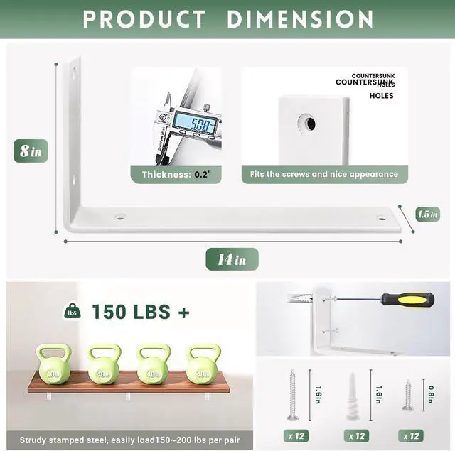 3. Versatile Size Selection Avail in 5x4, 8x6, 10x6, 12x8, and 14x8 inch, our l brackets for wood fit any shelving need. From small corner shelves to garage storage, these brackets for shelves adapt to your project. Each l bracket offers secure shelf support, making them perfect floating shelves brackets or wall shelf brackets for home and office.
