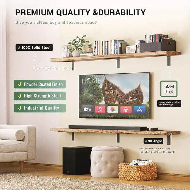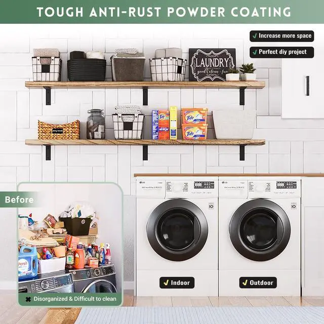 5. Multi-Purpose Use Anywhere These shelf brackets are ideal for kitchens, bedrooms, living rooms, offices, and garages. Use them as black shelf brackets for a modern look, l brackets for wood in rustic designs, or wall shelf brackets for storage. Each shelf holder and 90 degree bracket ensures strong shelf support while enhancing wall space.