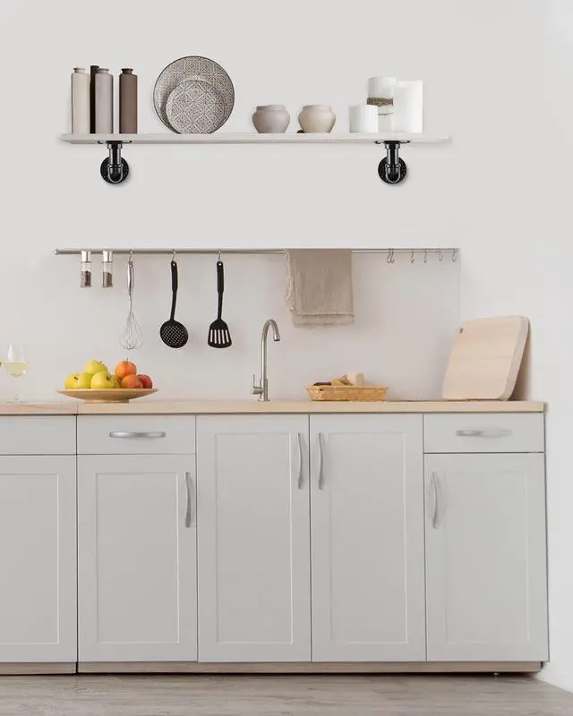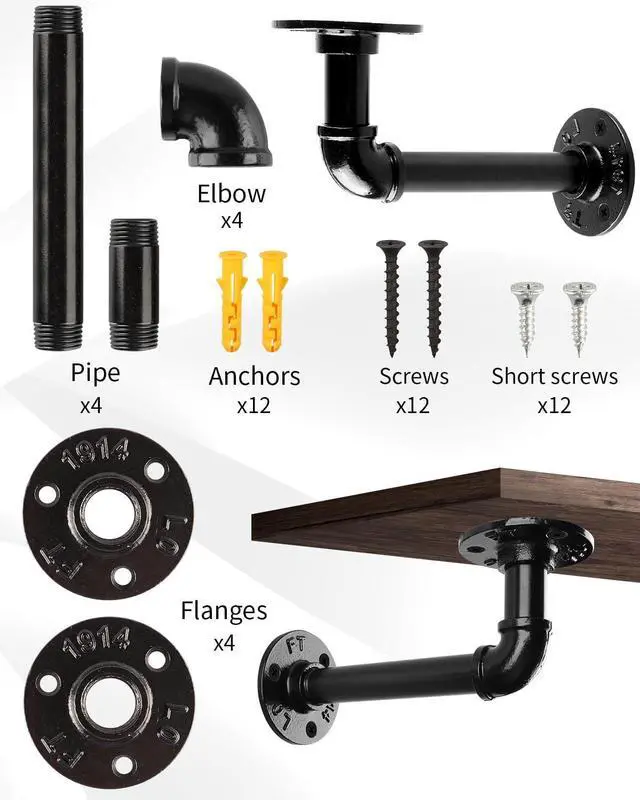 Industrial Pipe Shelving Design - With a design resembling antique pipes, shelving brackets offer a rustic, industrial look. wall brackets for shelves unique design can complement farmhouse, vintage and steampunk decor styles, adding a unique touch to your space.