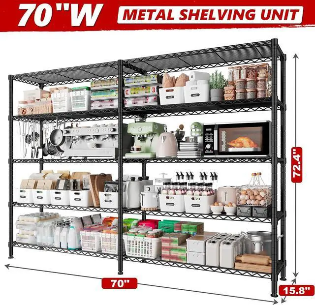 Flexible Assembly - Horizontal or L-shapedIf your home lacks the space for a 70"W wire rack shelving, you can opt for an L-shaped assembly. The Shelving unit is perfect for small spaces and corner areas. Choose from two assembly methods to suit your needs.